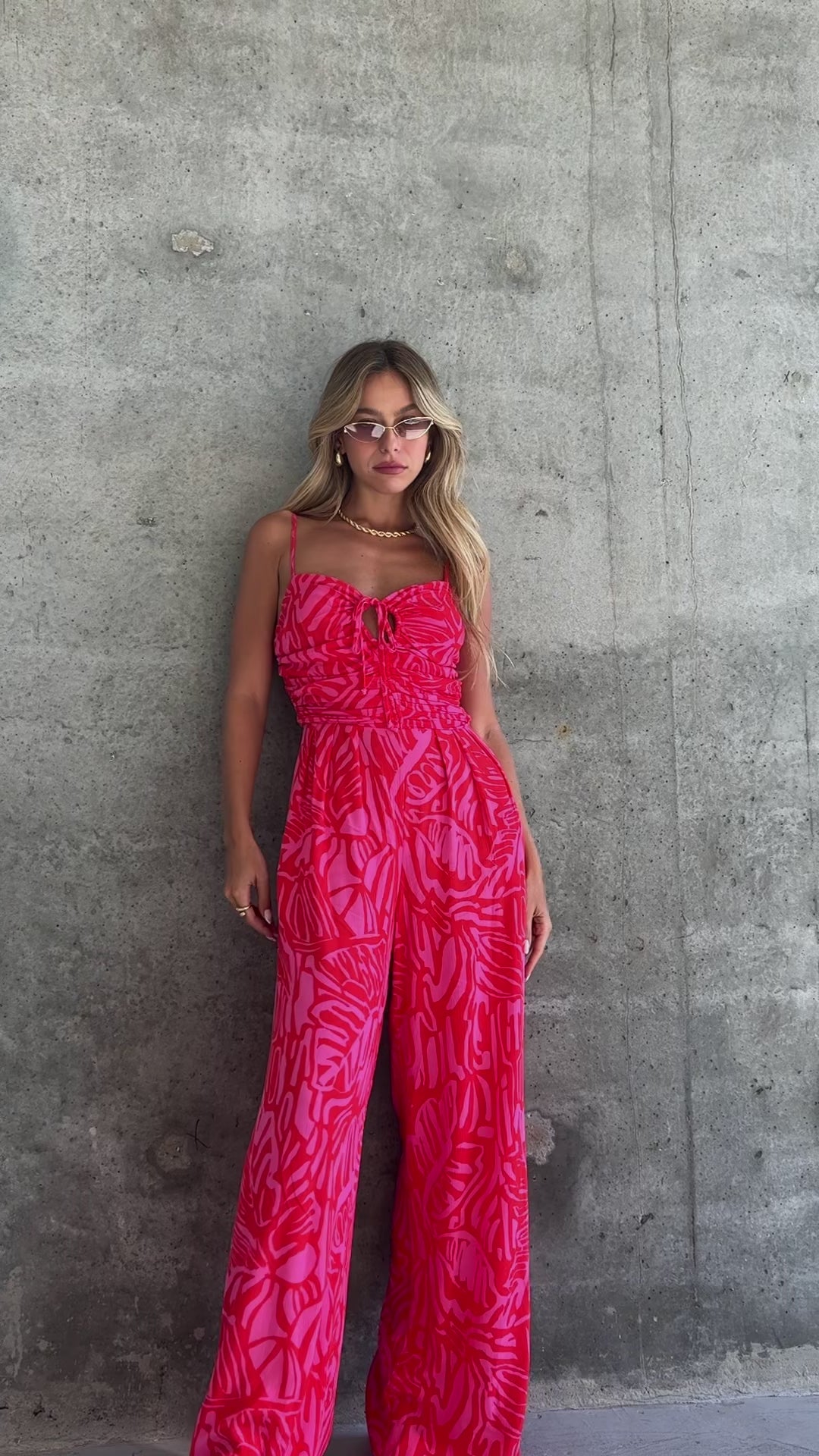 אוברול היילי הוא פריט קיץ מושלם המשלב נוחות עם אמירה אופנתית נועזת. האוברול מעוצב בגזרה מחמיאה, עם מכנסיים רחבים וזורמים שמעניקים תחושה קלילה ואוורירית, וחלק עליון צמוד עם הדפס בולט של גוונים ורודים.